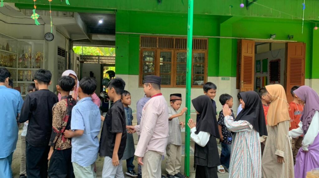 Kegiatan yang dilaksanakan di halaman sekolah ini bertujuan untuk mempererat ukhuwah Islamiyah serta menanamkan nilai saling memaafkan sejak dini kepada para siswa. Dengan penuh antusias, anak-anak datang membawa Kue THR (Turahan Hari Raya) dari rumah masing-masing untuk dibagikan bersama teman-teman.
